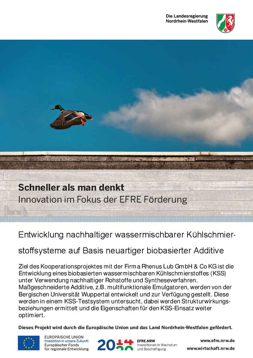 Innerhalb des Leitmarktwettbewerbs Energie- & Umweltwirtschaft.NRW entwickeln wir mit einem industriellen Partner gemeinsam nachhaltige, innovative Kühlschmierstoffe.